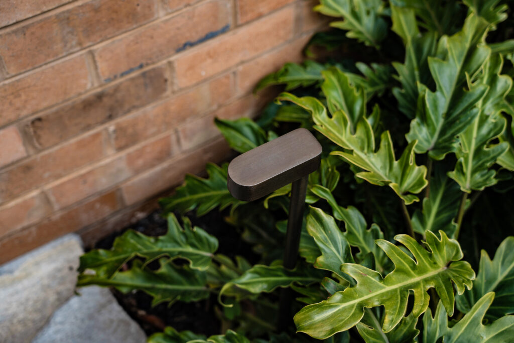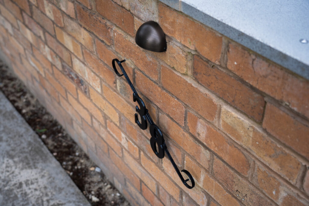 A small detail that adds real character is the home’s street identity. The original 1950s street number has been retained as a nod to the home’s history, and paired with a new round wall light above to improve visibility and create a warm glow at night. A recessed brick detail has also been introduced to echo the existing chimney brickwork, helping the new elements feel seamlessly integrated with the original façade. Discreet step lighting completes the arrival sequence, gently illuminating the entry and making it feel welcoming and safe after dark.