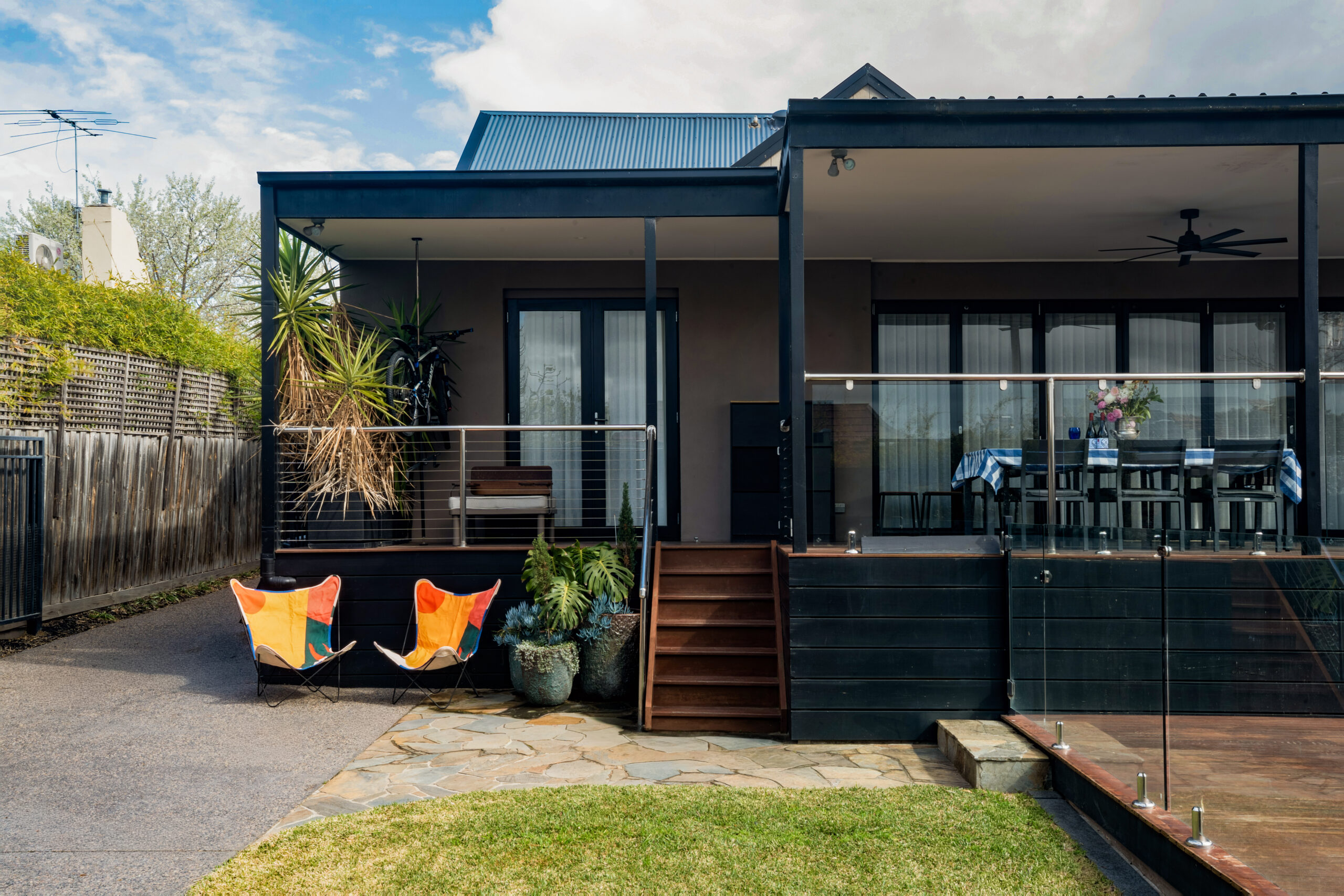 A standout feature of this garden is how it’s been purpose-designed for seamless robot mower integration — a genuine lifestyle upgrade for low-maintenance living. With gentle ramps and smooth connections between levels, the mower can travel freely and reach every lawn zone across the property, including the front garden, rear yard, and even the nature strip. It’s a set-and-forget system that keeps the turf consistently sharp and tidy with minimal effort, giving the owners more time to enjoy the space while the garden quietly maintains itself in the background.